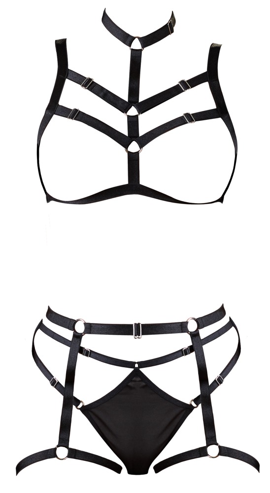 Dekoratives Harness für vielseitigen Spaß! Dieses Harness-Set sieht elegant und verrucht aus und verströmt einen heißen Bondage-Vibe. Das Material ist mit Elasthan ausgestattet und hat mehrere verstellbare Schnallen für den idealen Tragekomfort. 90% Polyester, 10% Elasthan.